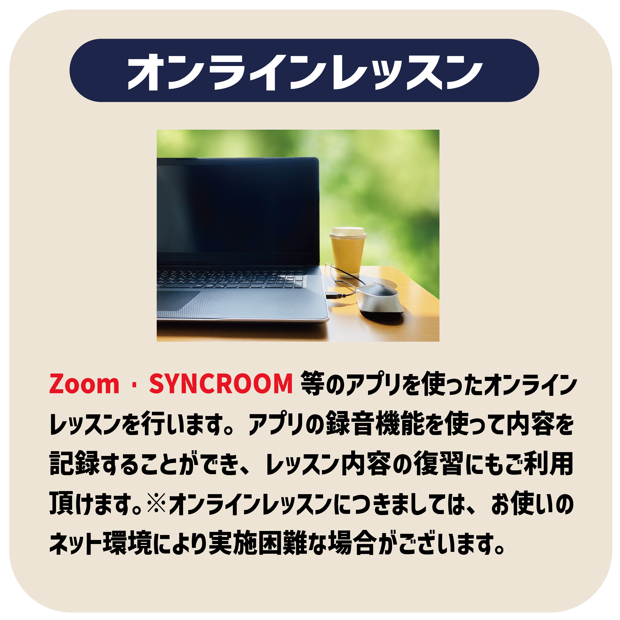 オンラインレッスンは、ZoomやYAMAHAのSYNCROOM